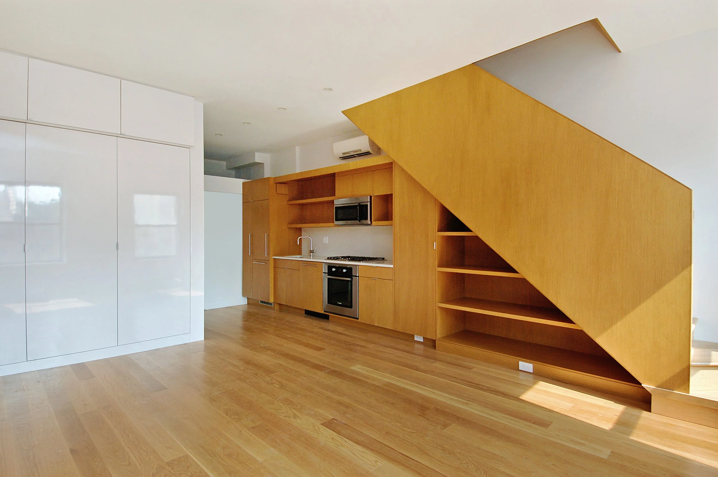 Located on a historic tree-lined block in Chelsea, Blesso Properties purchased this elegant five-story brick in 2006 in an off-market transaction with the foresight of the High Line Park and West Chelsea’s rise to prominence in mind. The property was held as an income-producing investment until its renovation, and condo conversion were achieved in 2014. We redesigned the first two floors of the building into one large duplex, recapturing significant square footage that was previously used for circulation, while using the rest of the building to re-define the concept of studio living by questioning the preconceived notion that smaller units mean sacrifices or compromises.