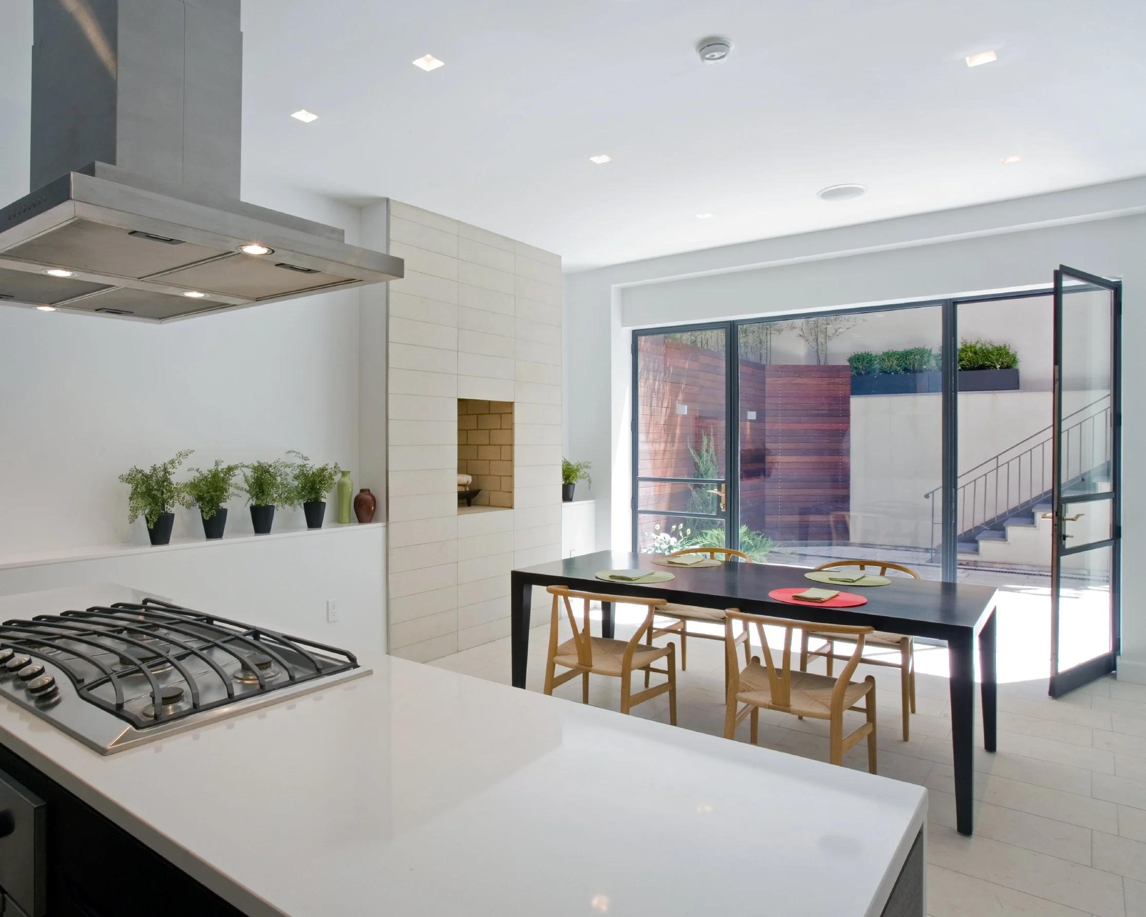 Blesso Properties restored the building to a 2,700 square foot, three bedroom, single-family residence with a design which simultaneously salvaged those historic details that could be saved while complimenting them with a spacious contemporary plan and a private roof deck. The elegant home boasts three wood-burning fireplaces, a restored original winding staircase, an open-plan English kitchen leading to the courtyard, and heated limestone floors.